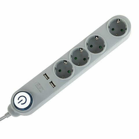 Сетевой фильтр SONNEN DX04, комплект 2 шт., 4 розетки, 2 USB-порта, с заземлением, 10 А, 1.5 м, серый, 513493 информация: