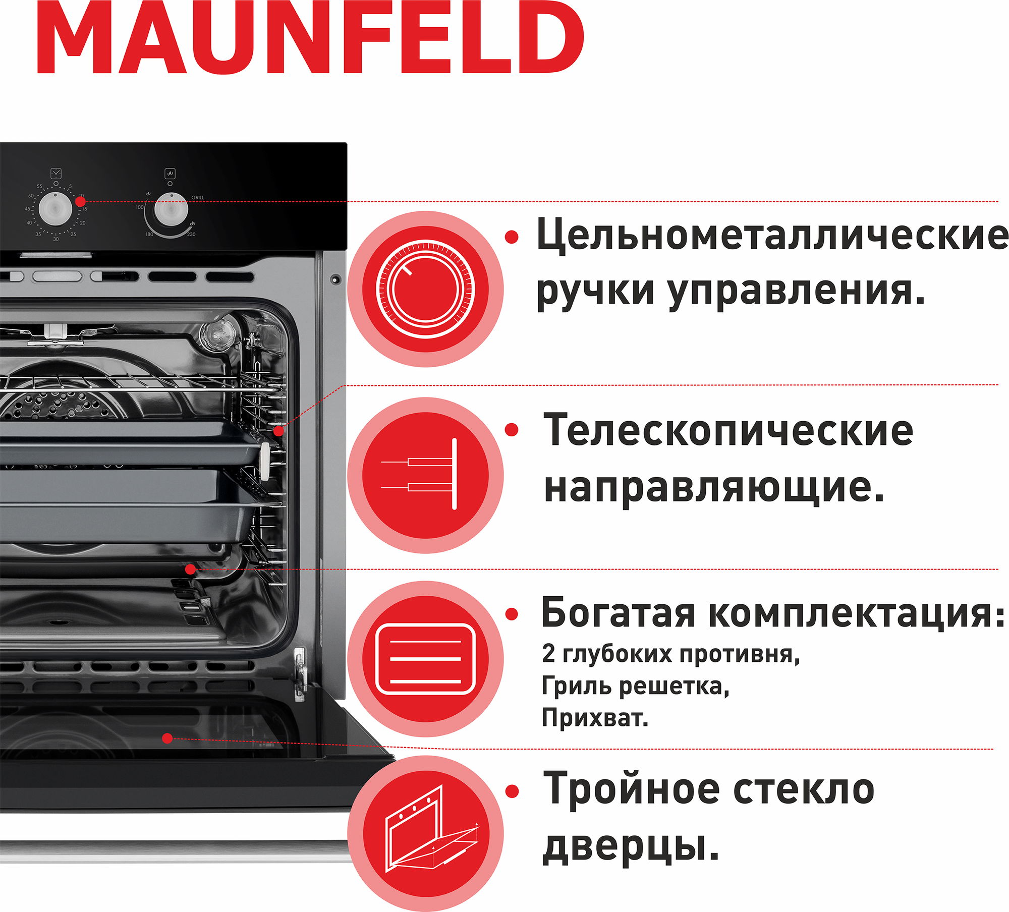 Встраиваемый газовый духовой шкаф MAUNFELD MGOG.673 B информация:
