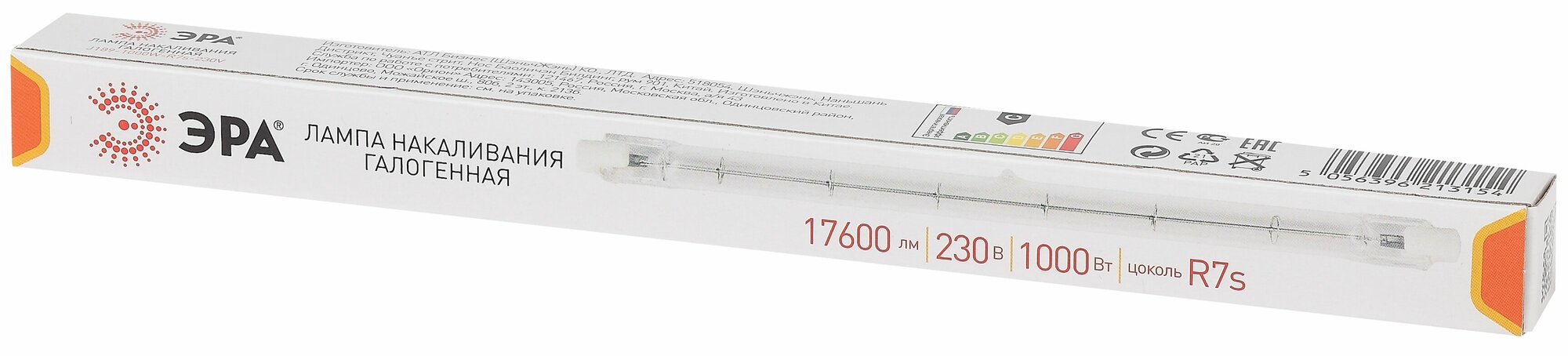 Лампа галоген 1000Вт лин R7s 189мм 17600Лм ЭРА (1/10) информация: