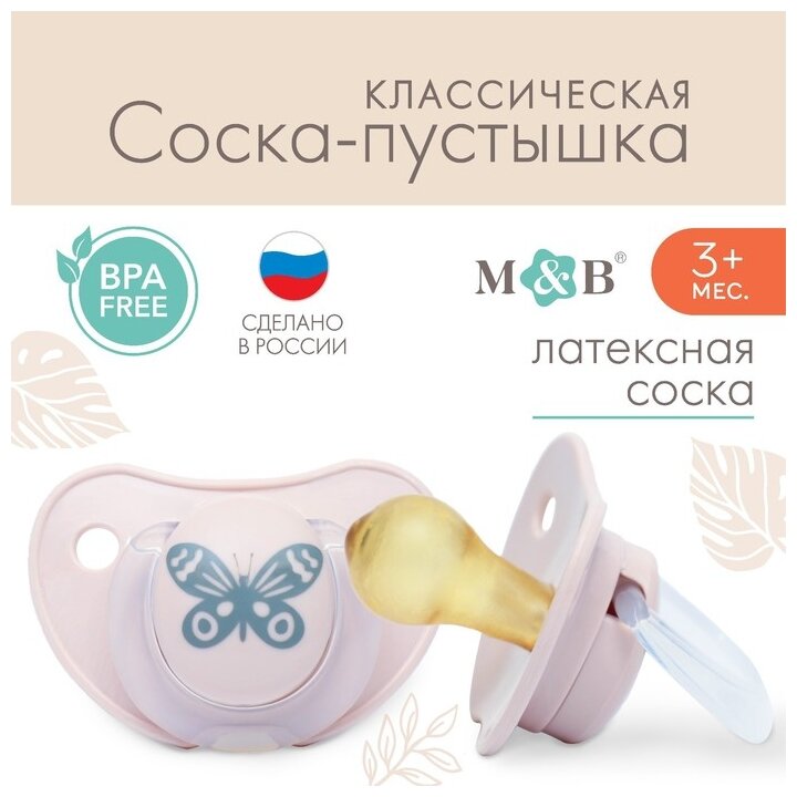 Mum&Baby Соска-пустышка классическая, от 3 мес., латекс, "Бабочка" информация: