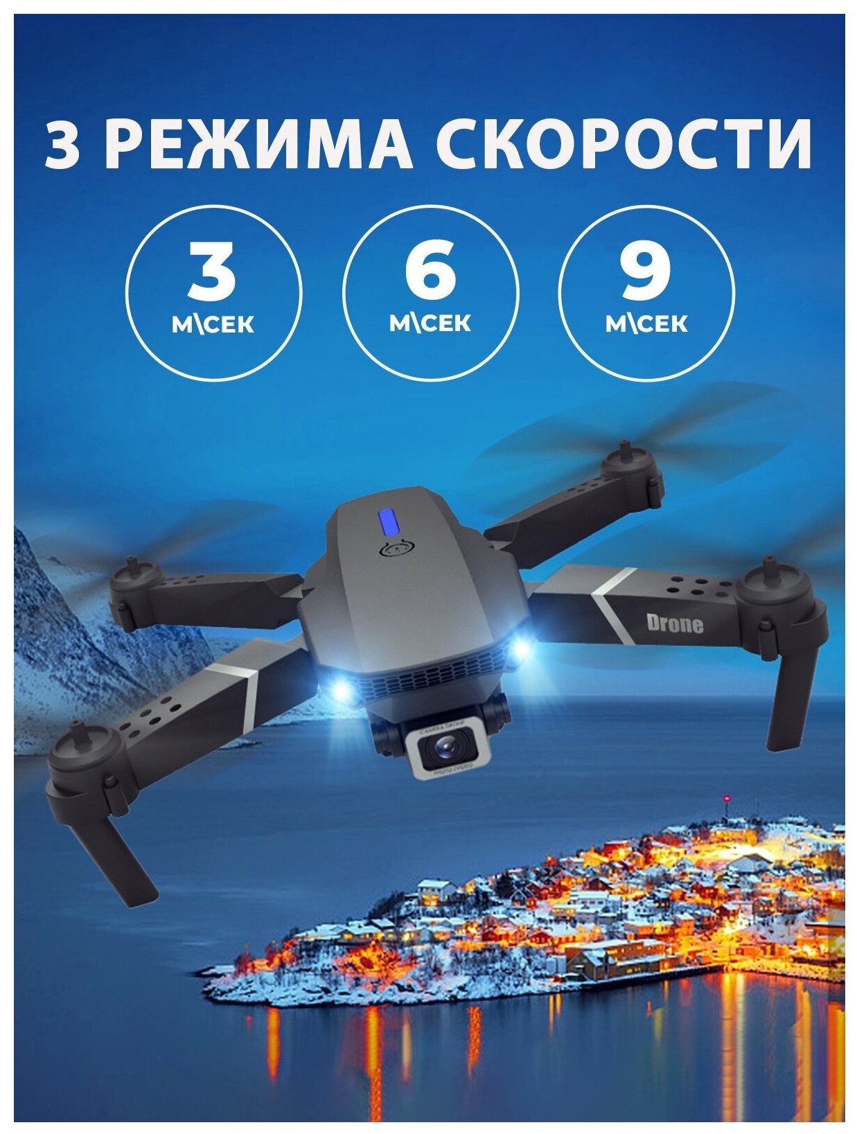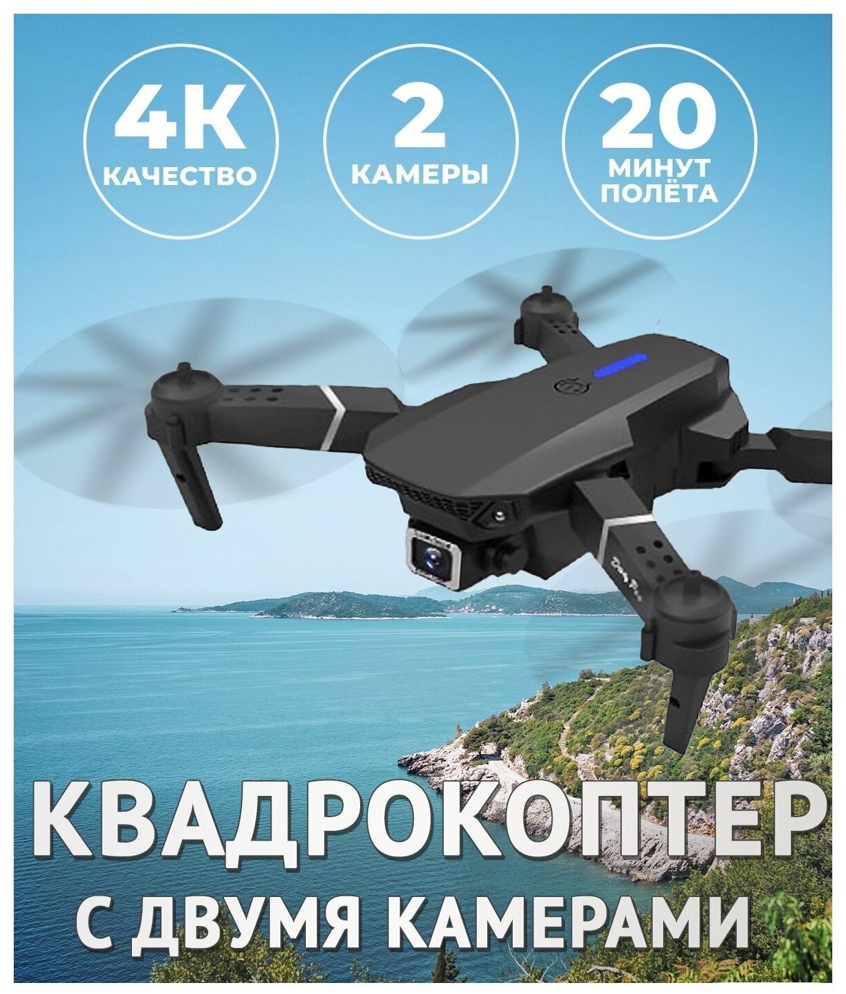 | Дополнительная информация | 2 камеры на выбор: широкоугольная 1080P и 4K для обеспечения широкого спектра фотографий и видео высокой четкости; для работы пульта необходимо 3 батарейки типа АА (не входят в комплект); двигатель: 816 мотор без сердечника; ударопрочный корпус из ABS пластика; размер в сложенном виде: 12,5х8х5,5 см; 3 уровня переключения скорости; размер кейса: 22х18х6 см |