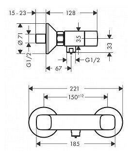 Смеситель Hansgrohe Logis 71263000 для душа настенный, двухзахватный, хром