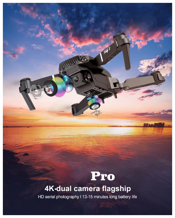 Квадрокоптер PRO/ Селфи дрон для полетов с двумя камерами! Съемка фото и видео. Квадрокоптер 4К. информация: