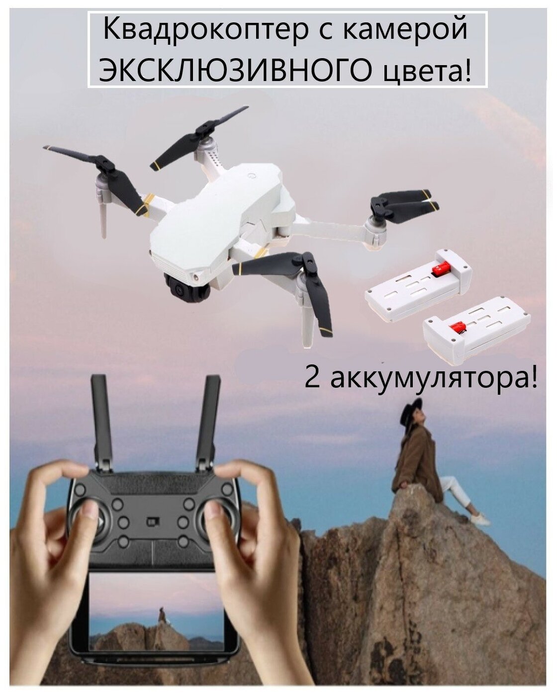 Квадрокоптер/ Дрон с камерой/ квадрокоптер для фото и видео съёмки, белый, 2 аккумулятора! информация: