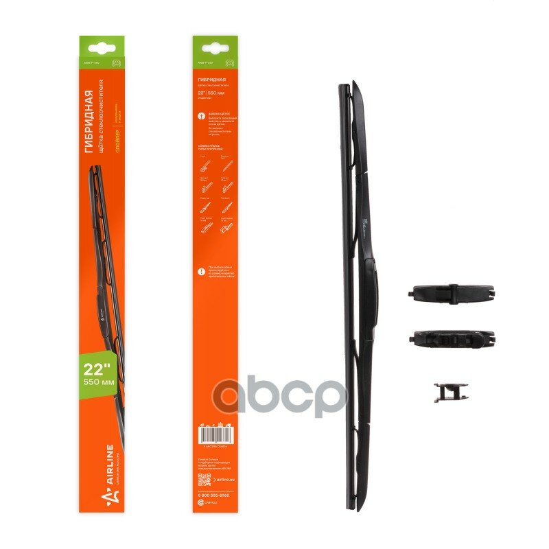 AIRLINE / awbh550 / Щетка стеклоочистителя 550 мм (22) гибридная, 3 адаптера"