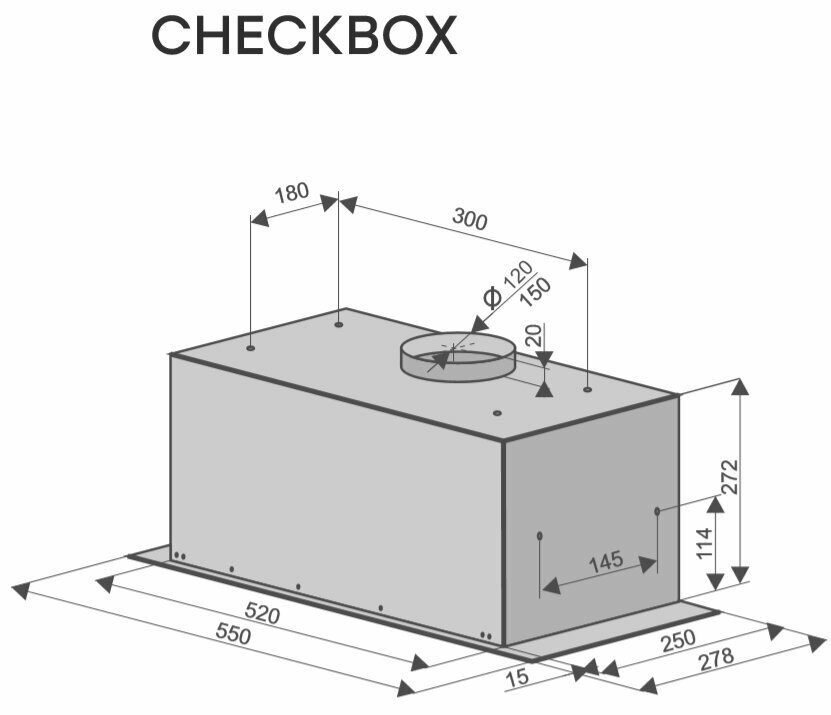 Вытяжка в подвесной шкаф Konigin Checkbox Black 60, 900 куб.м/час, ширина 60 см, черный, Польша