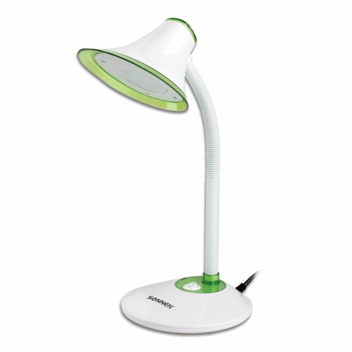 Светильник настольный SONNEN OU-608, на подставке, светодиодный, 5 Вт, белый/зеленый