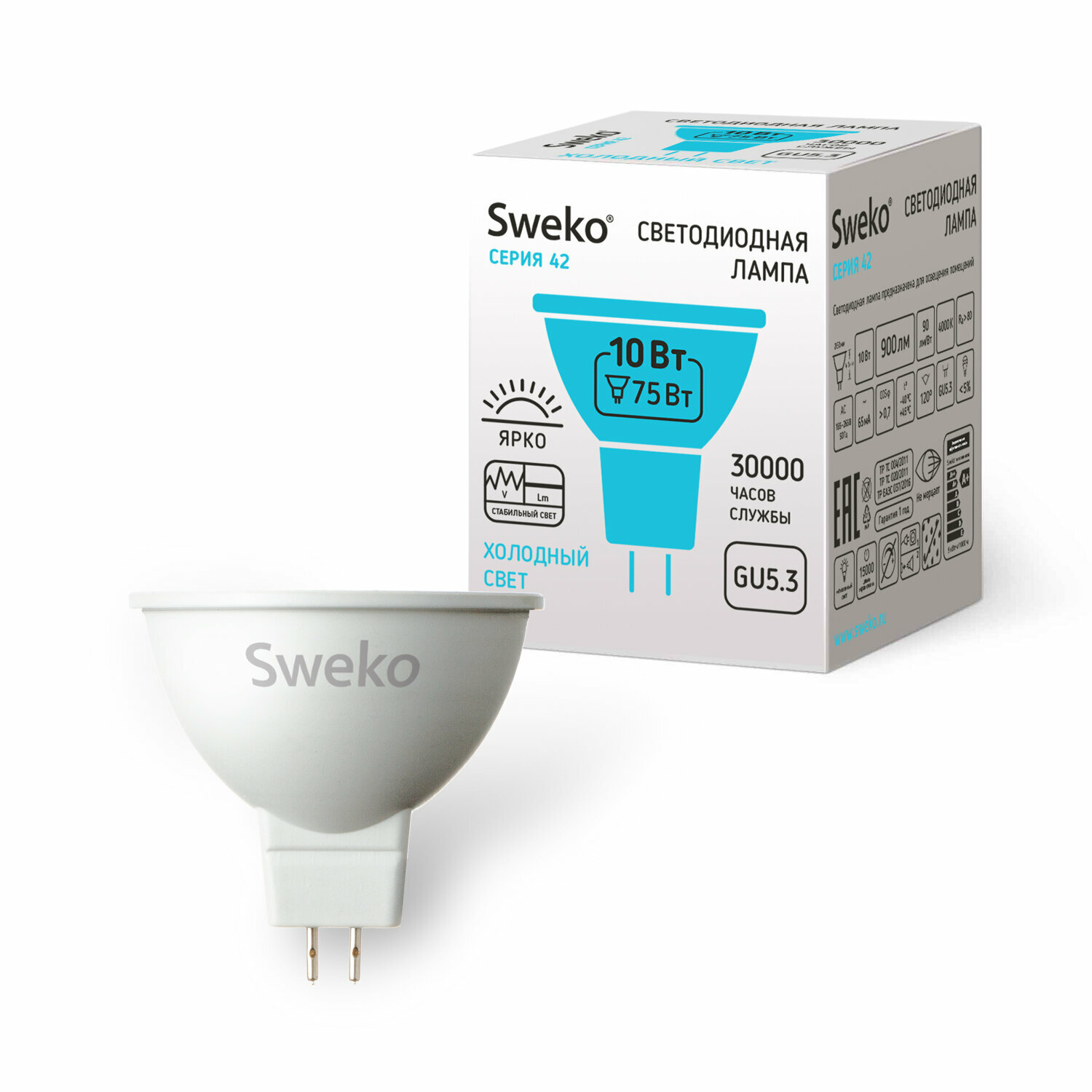Отзывы на Комплект из 5 штук. Sweko Светодиодная лампа Серия 42 MR16 матов GU5.3 10W(900lm) 4000K 41х50