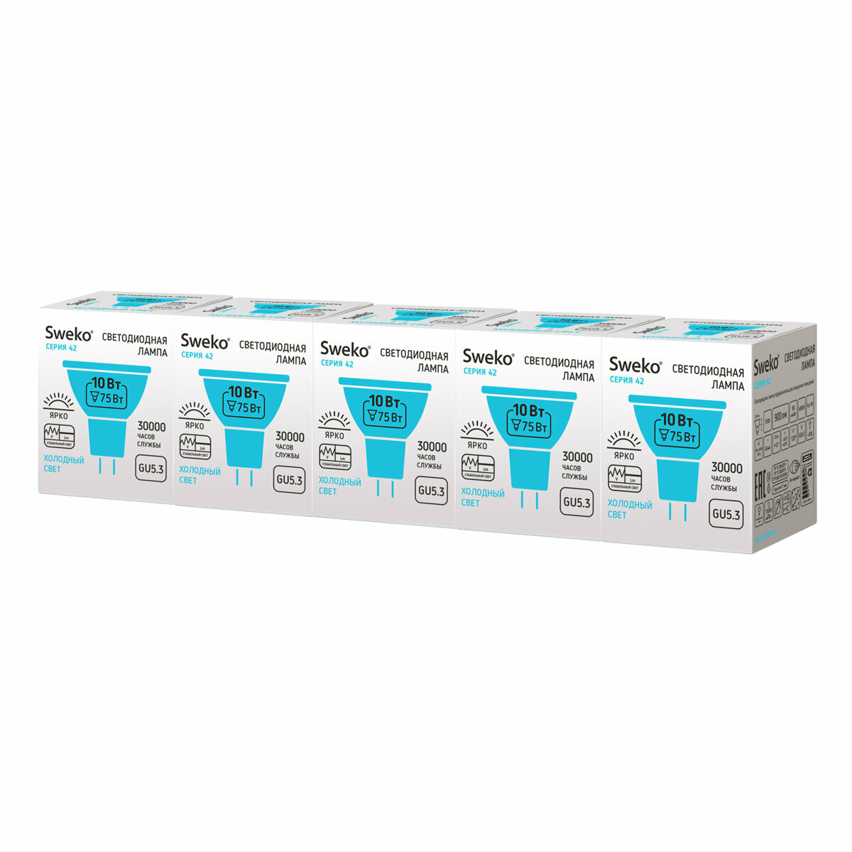 Комплект из 5 штук. Sweko Светодиодная лампа Серия 42 MR16 матов GU5.3 10W(900lm) 4000K 41х50 информация: