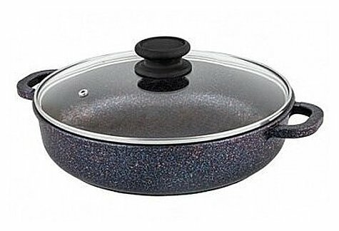 Жаровня антипригарная литая 26см со стеклянной крышкой Сапфир ТМ Традиция готовить с любовью