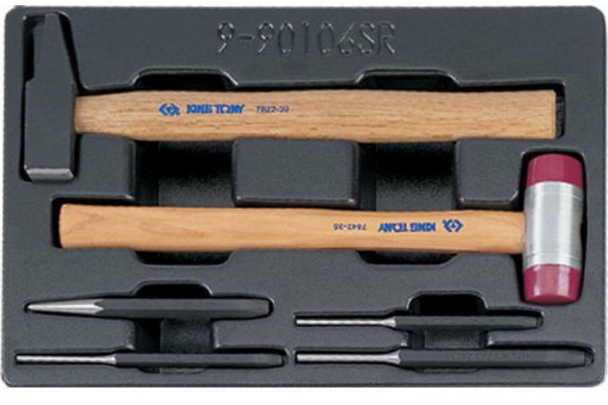 9-90106SR KING TONY Набор выколоток и керн с молотками, ложемент, 6 предметов