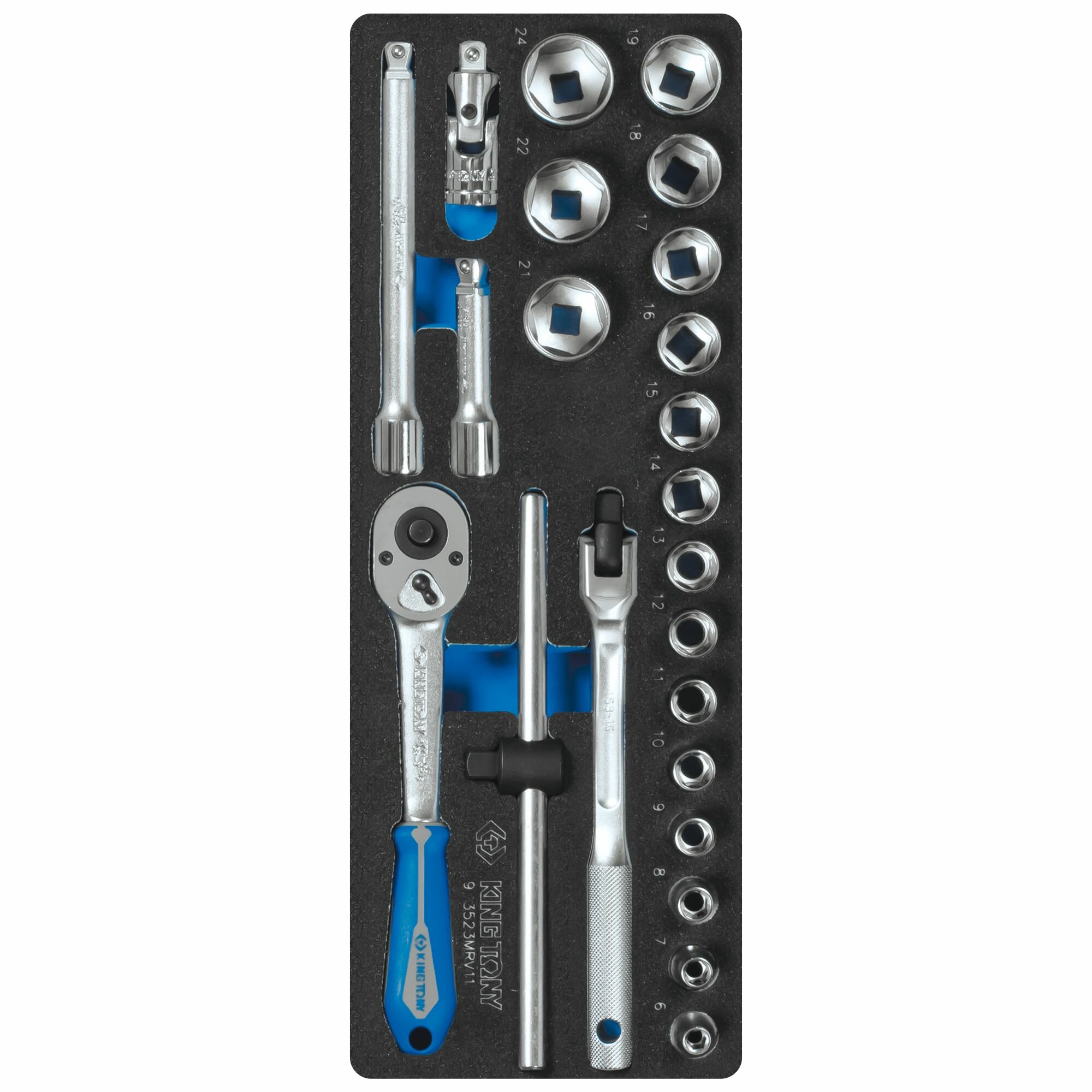 Набор торцевых головок 3/8" с принадлежностями, ложемент, 23 предмета KING TONY 9-3523MRV11 информация: