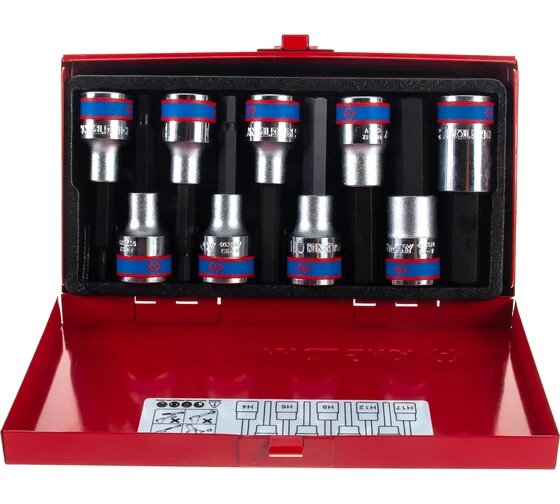 10 цен на Набор торцевых насадок 1/2", Hex, 4-17 мм, L = 80 мм, 9 предметов KING TONY 4120PR