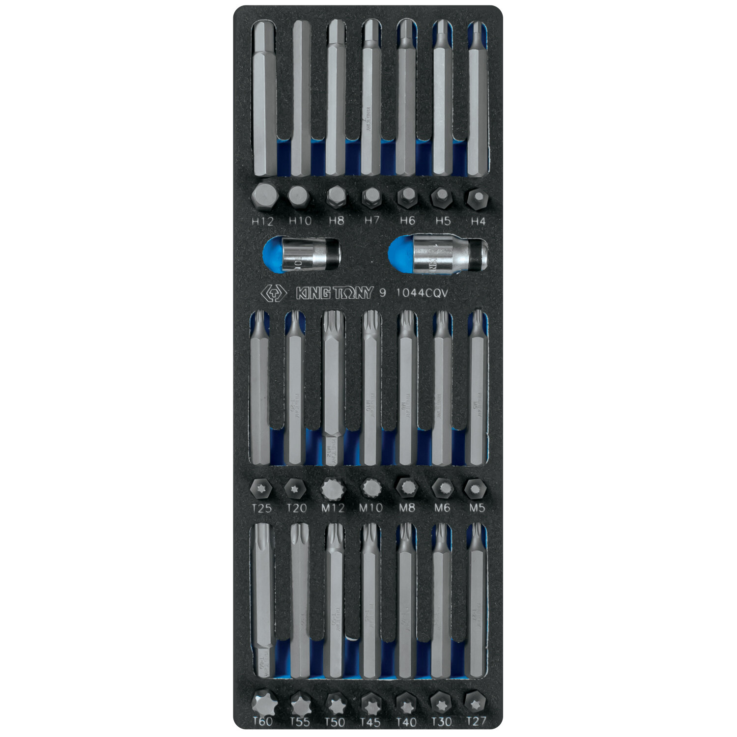 9-1044CQV KING TONY Набор вставок (бит) 10 мм, TORX, SPLINE, HEX, ложемент, 44 предмета 9-1044CQV