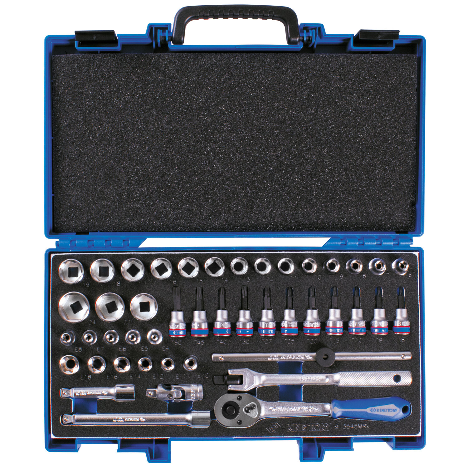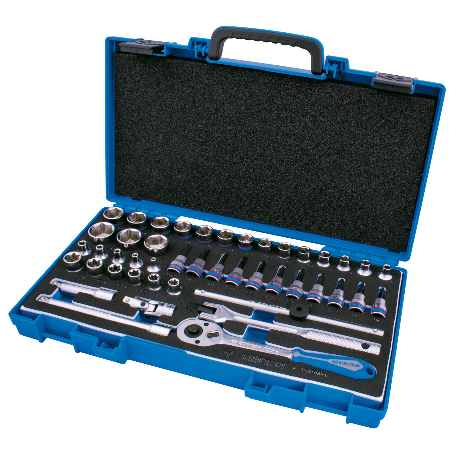 Набор торцевых головок с принадлежностями 3/8", шестигранные, 6-24 мм, 45 предметов KING TONY 3545MRV информация: