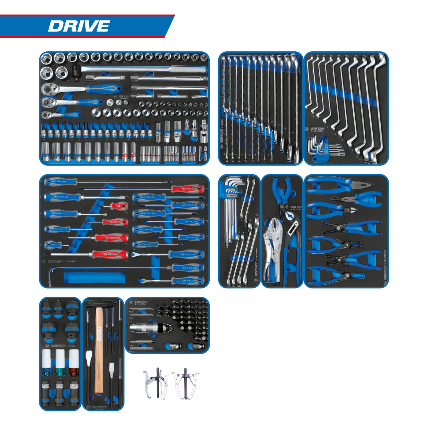 Набор инструментов "DRIVE" для тележки, 10 ложементов, 251 предмет KING TONY 934-251MRVD информация: