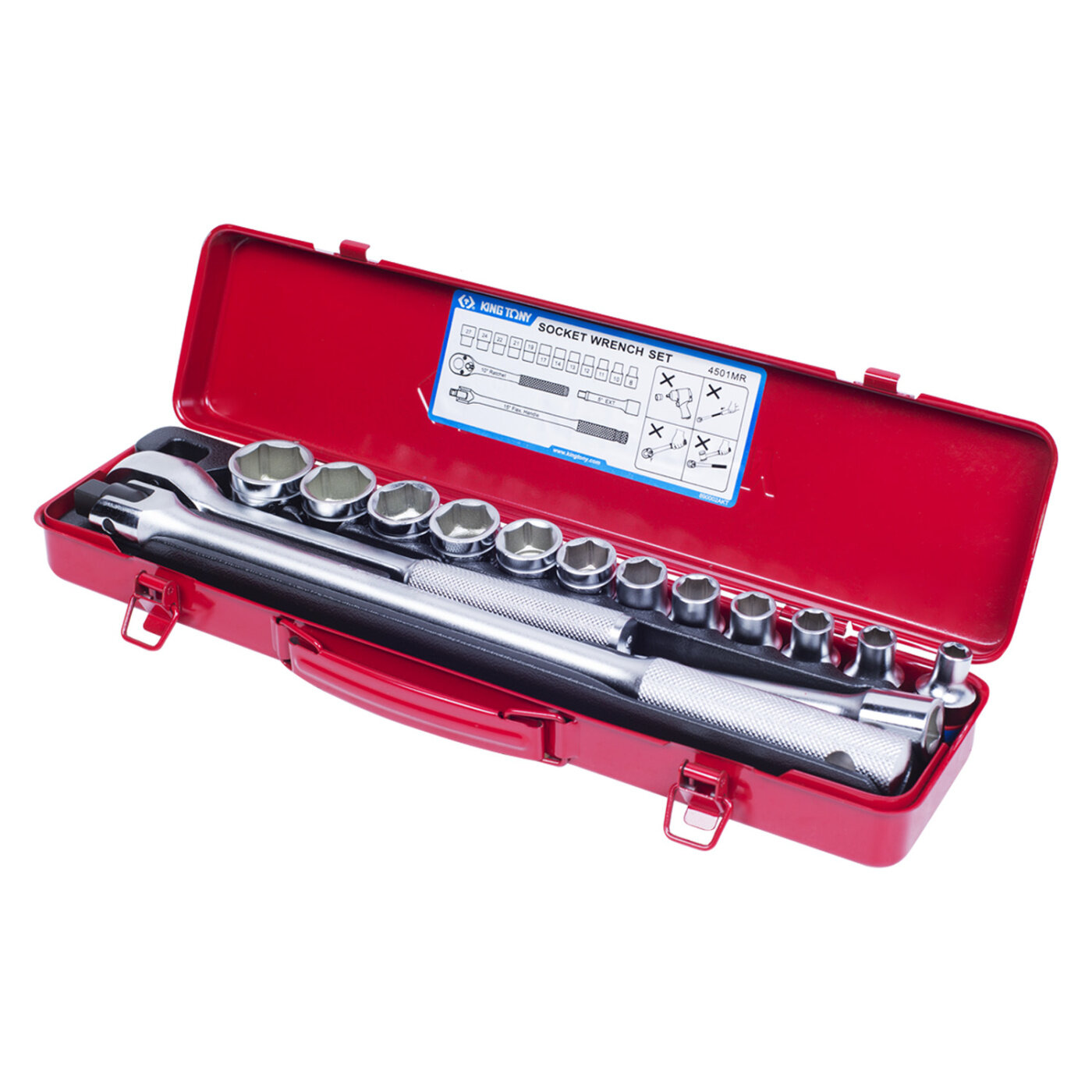 4501MR KING TONY Набор торцевых головок с принадлежностями 1/2", шестигранные, 8-27 мм, 15 предметов