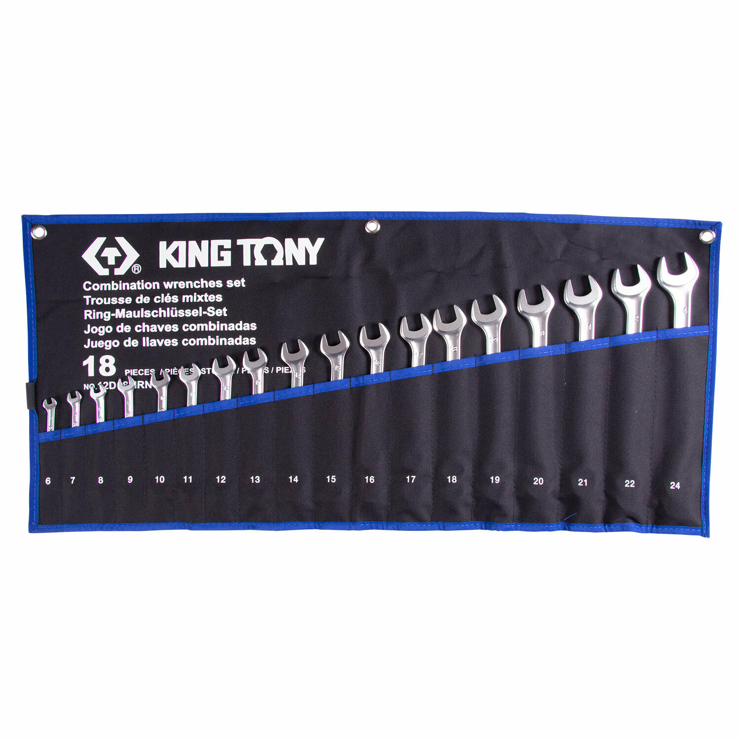 10 цен на Набор комбинированных ключей, 6-24 мм, чехол из теторона, 18 предметов KING TONY 12D18MRN