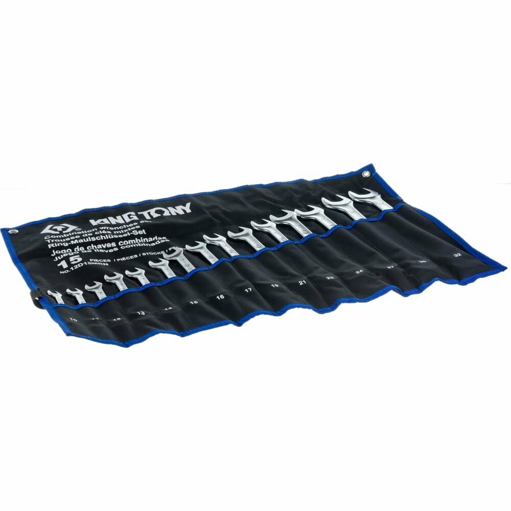 Набор комбинированных ключей KING TONY 10-32 мм, чехол из теторона, 15 предметов 12D15MRN