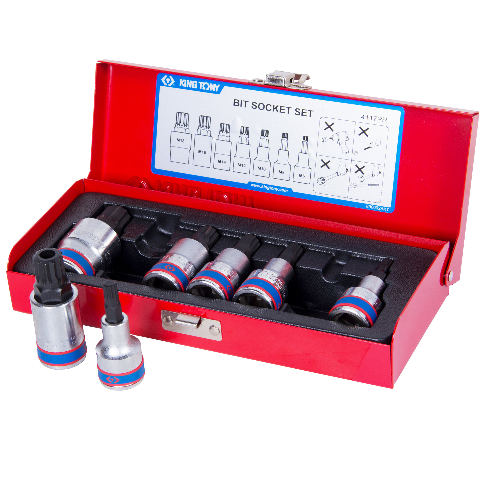4117PR KING TONY Набор торцевых насадок 1/2", SPLINE, M6-M18, L = 60 мм, 7 предметов 4117PR