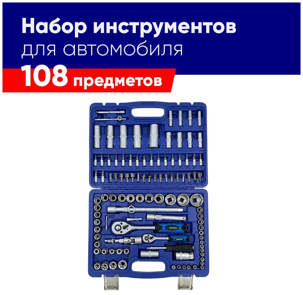 Отзывы на Набор инструментов в кейсе 108 предметов 1/2" 1/4" универсальный, для автомобиля, дома , торцевые головки, ключи, биты с трещоткой