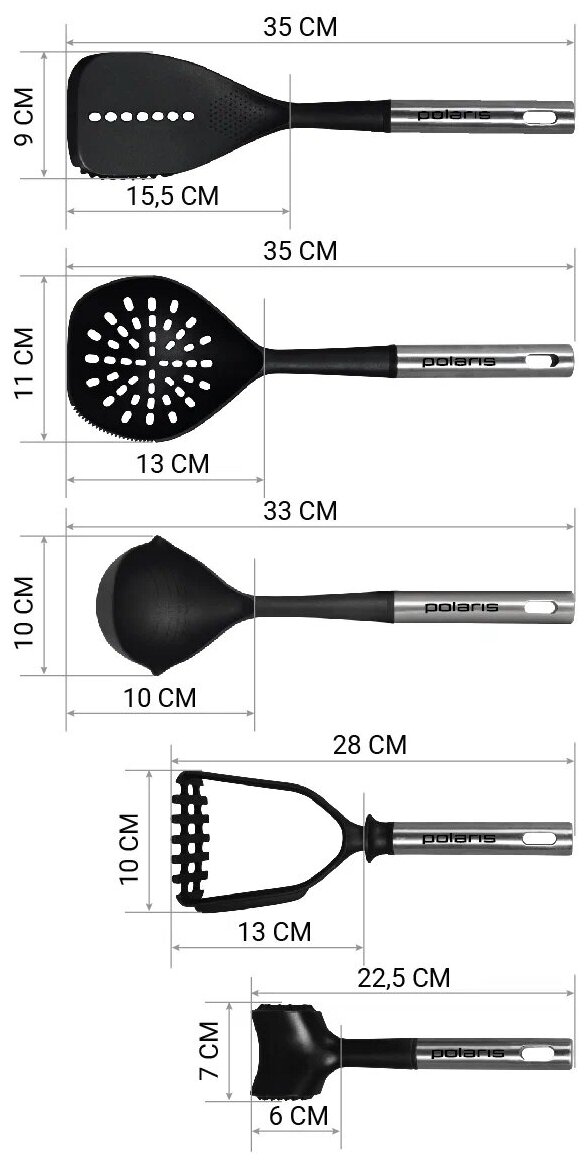 Набор кухонный Polaris Accent-5SN, 5 предметов (шумовка, лопатка, половник, картофелемялка, молоток) 2 999 ₽