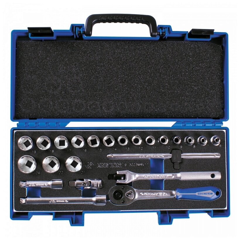 3023MRV11 KING TONY Набор торцевых головок с принадлежностями 3/8", двенадцатигранные, 6-24 мм, 23 предмета