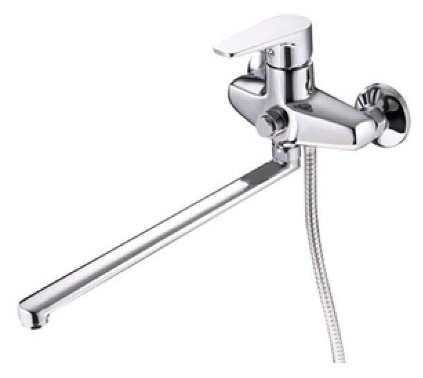 Смеситель на раковину настенный Эверест B46-350 с круглым поворотным изливом, кран-буксы 1/2", хром