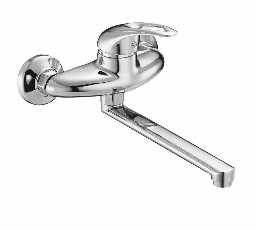 Смеситель на раковину настенный Эверест B46-350 с круглым поворотным изливом, кран-буксы 1/2", хром