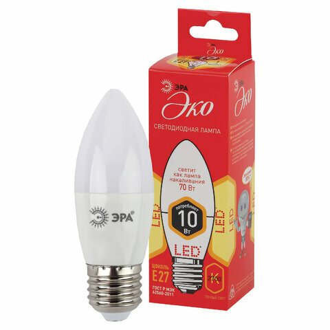 Отзывы на Лампа светодиодная ЭРА, комплект 50 шт., 10(85)Вт, цоколь Е27, свеча, теплый белый, 25000 ч, ECO LED B35-10W-2700-E27, Б0032962