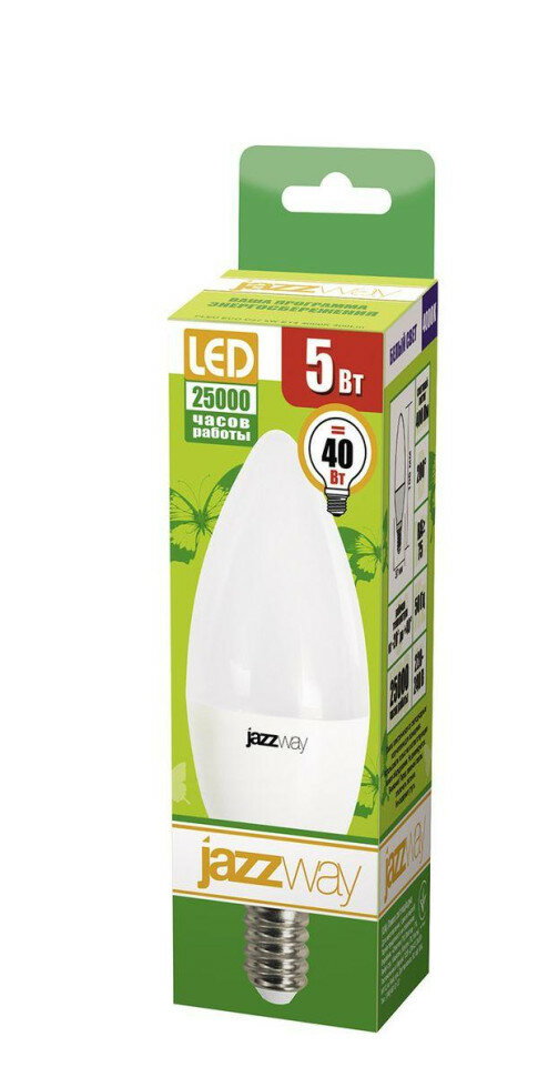 Отзывы на Лампа светодиодная PLED-ECO-C37 5Вт свеча 4000К бел. E14 400лм 220-240В JazzWay 1036865A ( 1шт. )