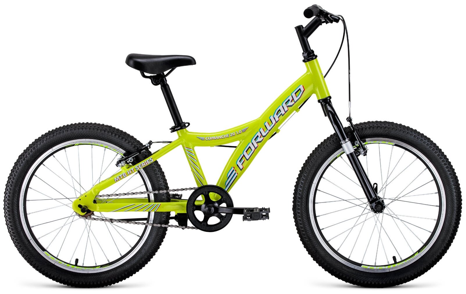 Велосипед FORWARD COMANCHE 20 1.0 (20" 1 ск. рост 10.5") 2020-2021, ярко-зеленый/белый, RBKW11601003