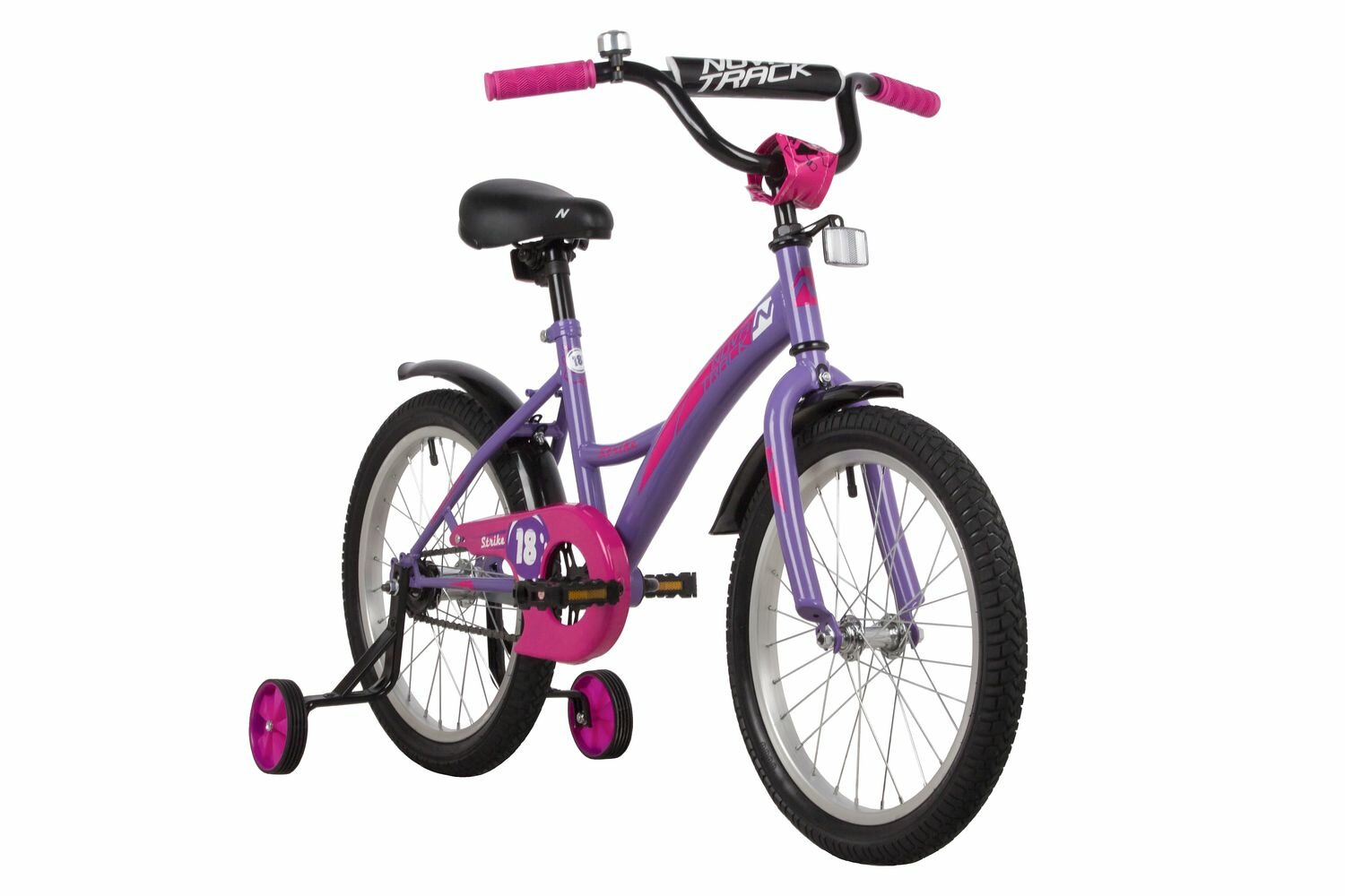 Велосипед NOVATRACK 18" STRIKE фиолетовый, тормоз ножной, крылья короткие, защита А-тип / велосипед детский