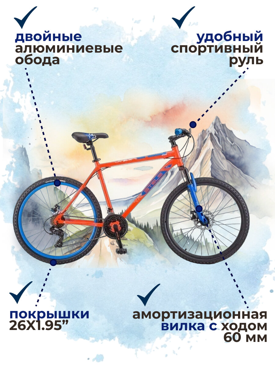 Отзывы на Велосипед горный с колесами 26" Stels Navigator 500 D F020 красно-синий рама 18", 21 скорость