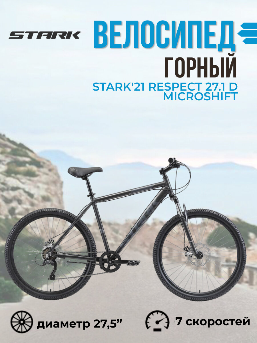 Велосипед Stark'21 Respect 27.1 D Microshift черный/черный рама L(20")(HD00000158) информация: