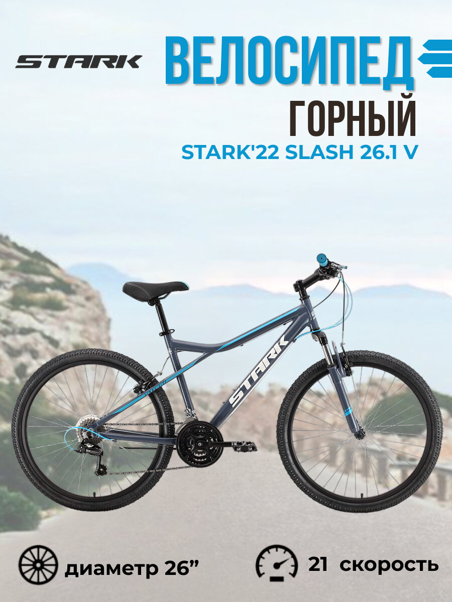 Велосипед Stark Slash 26.1 V (2022) (Велосипед Stark'22 Slash 26.1 V серый/голубой 18", HQ-0005270) 18 310 ₽