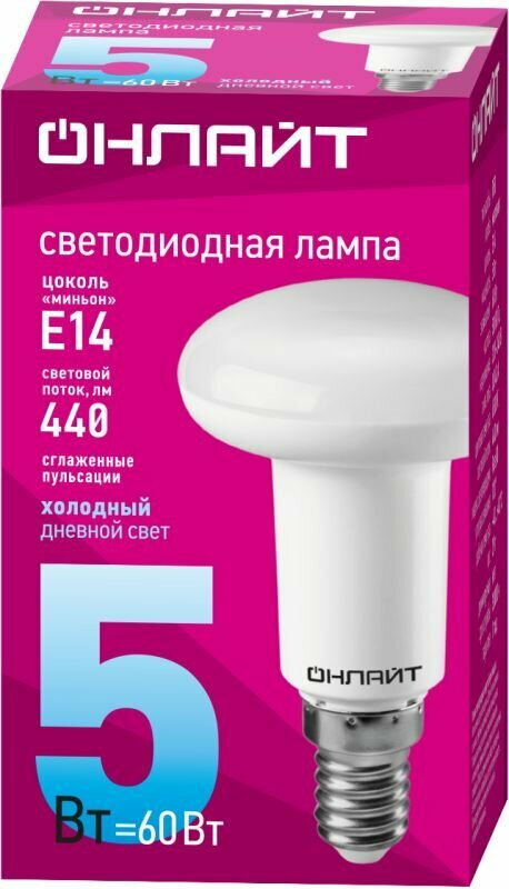 Онлайт R50 E14 5W(440Lm) 6500K 6K 85x50 OLL-R50-5-230-6.5K-E14 61142 (арт. 617438)
