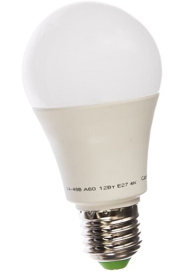 Лампа светодиодная «груша» Navigator холодный белый свет 12Вт 61478 NLL-A60-12-24/48-4K-E27 4000К 24-48В AC/DC 384 ₽