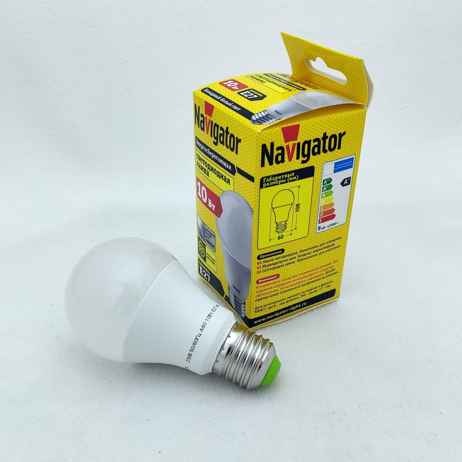 (20 шт.) Светодиодная лампочка Navigator ЛОН A60 E27 10W(820lm) 4000 4K 110x60 NLL-A60-10-230-4K-E27 94388 . Цоколь E27 3 794 ₽