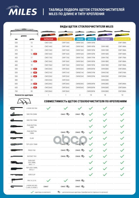 MILES MILES Щетка со зимняя MILES 15370mm в коробке + адаптер HOOK 9x39x4 MILES cww15ac
