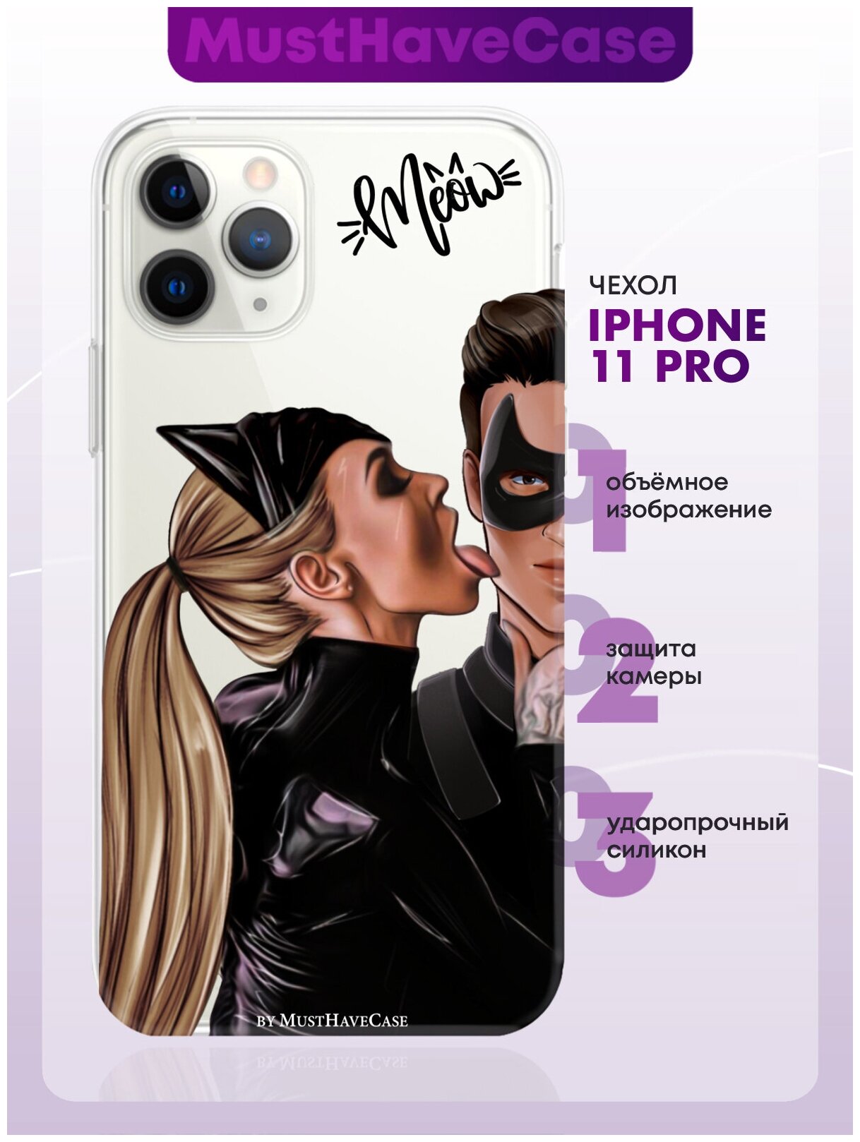 10 цен на Прозрачный силиконовый чехол MustHaveCase для iPhone 11 Pro Кошечка с парнем для Айфон 11 Про