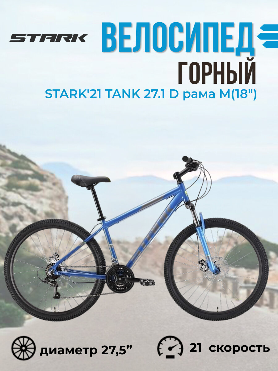 10 цен на Велосипед Stark'21 Tank 27.1 D синий/серый 21 скорость рама M (18") HQ-0004981