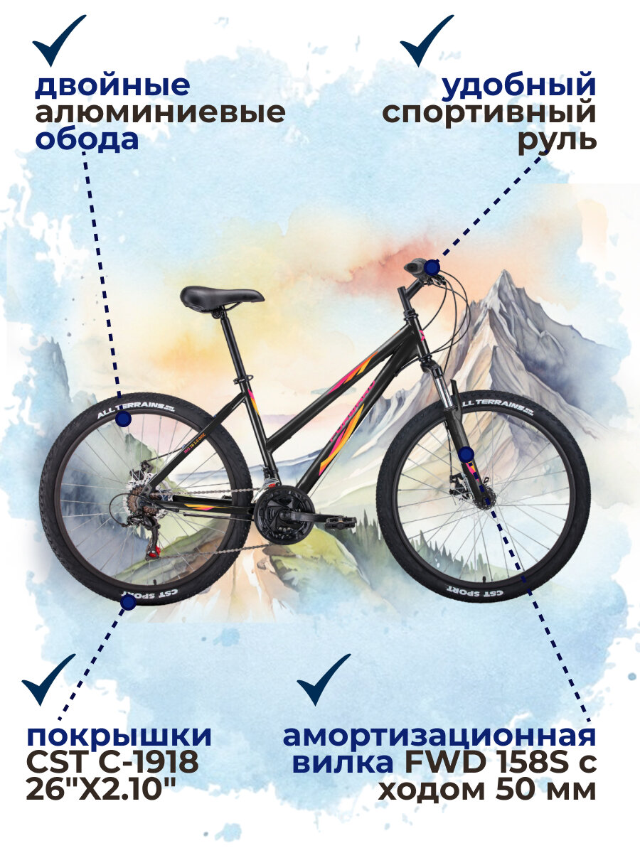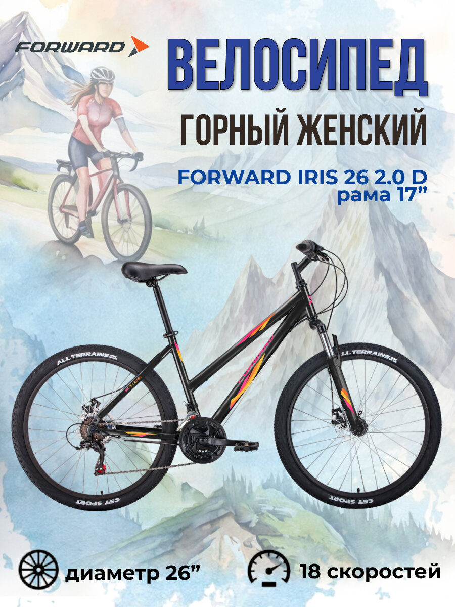 Отзывы на Женский горный велосипед с колесами 26" Forward Iris 26 2.0 D 2022 год рама 17" черный/розовый 18 скоростей