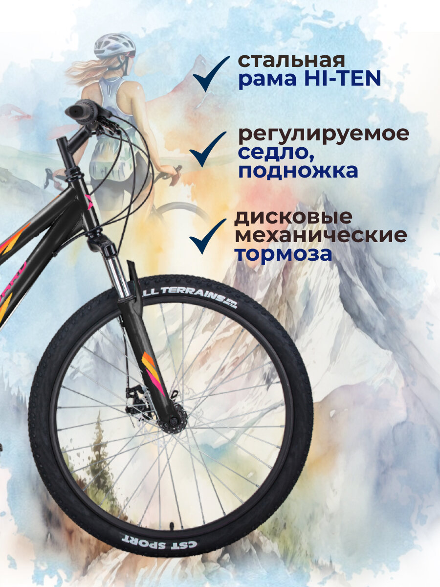 10 цен на Женский горный велосипед с колесами 26" Forward Iris 26 2.0 D 2022 год рама 17" черный/розовый 18 скоростей