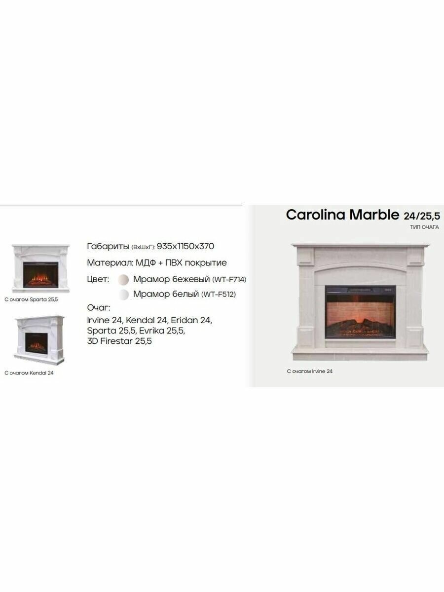 Электрокамин RealFlame Carolina Marble 24/25.5 WT-F512 с очагом Evrika 25,5 LED информация: