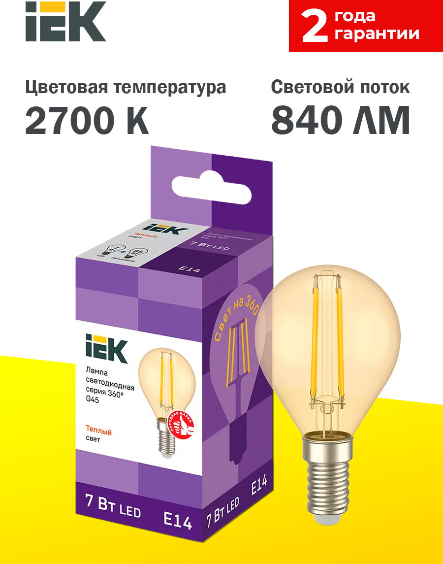 Отзывы на Iek Llf-g45-7-230-30-e14-clg Лампа LED G45 шар золото 7Вт 230В 2700К E14 серия 360 .