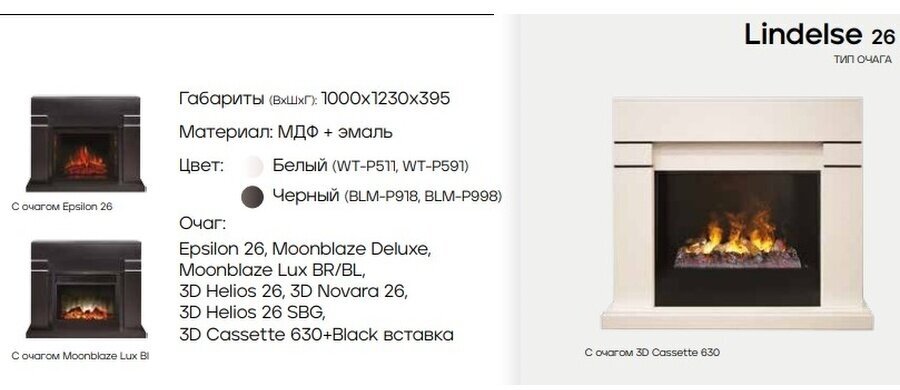 Электрокамин RealFlame Lindelse 26 BLM с Epsilon 26 S IR информация: