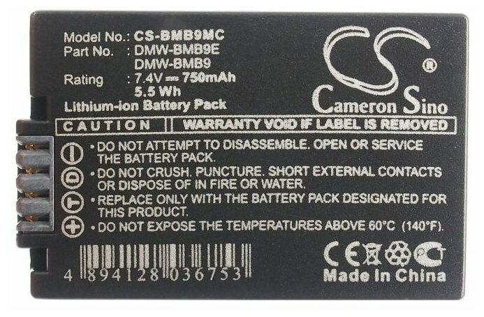 Аккумулятор для Leica BP-DC9, Panasonic DMW-BMB9, DMW-BMB9E информация: