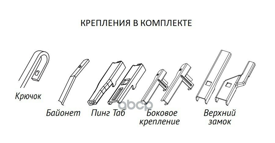 | Тип крепления | боковой зажим (pinch tab) / верхний замок (top lock) / крючок (hook) / боковой штырь (side pin) / штыковой замок (bayonet) |