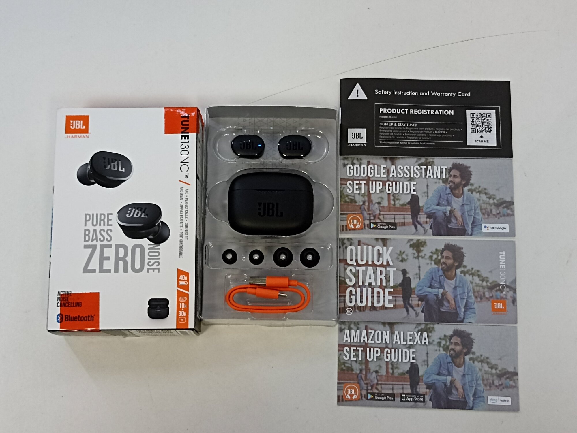 | Комплектация | 1 пара наушников JBL Tune 130NC TWS, 1 чехол с функцией зарядки, 1 зарядный кабель USB-С, по одной паре амбушюр 3 разных размеров, 1 гарантийный талон/предупреждение, 1 краткое руководство пользователя/паспорт безопасности |